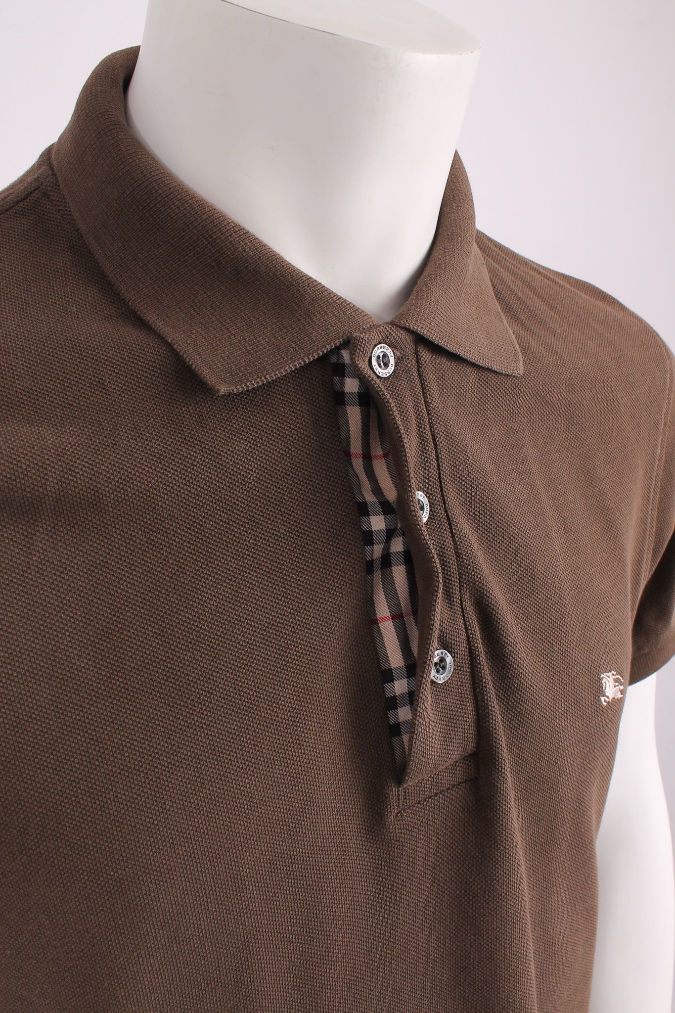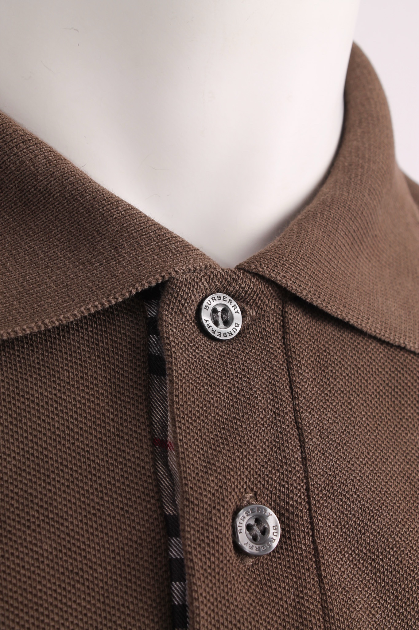 Polo Burberry con logo ricamato in petto. Interno scollo rifinito con motivo check del brand. Abbottonatura frontale con bottoni coordinati. Tessuto in cotone piqué