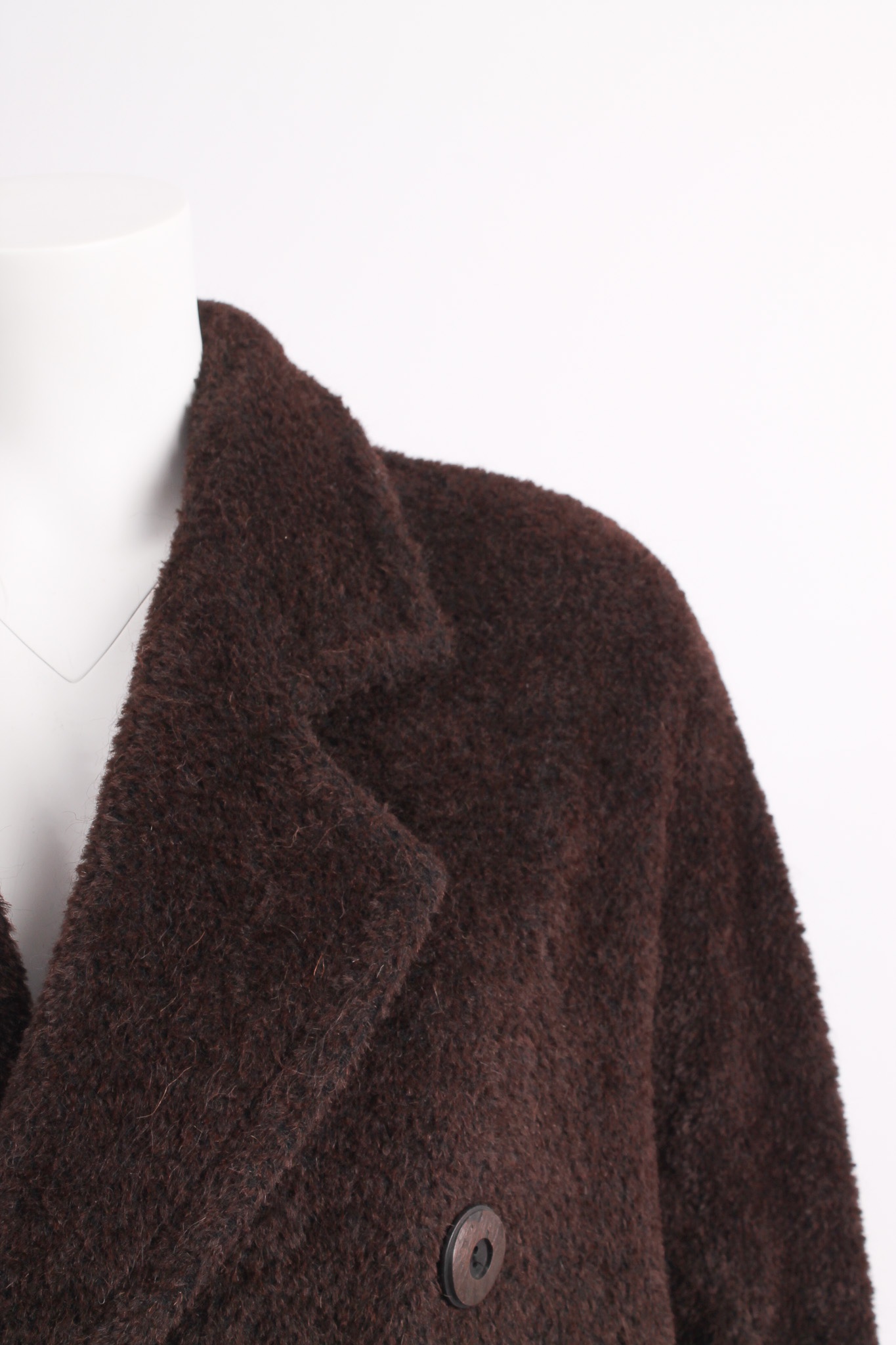 Cappotto Max Mara doppiopetto realizzato in tessuto misto alpaca. Struttura morbida con vestibilità ampia. Chiusura frontale con bottoni e linea classica.