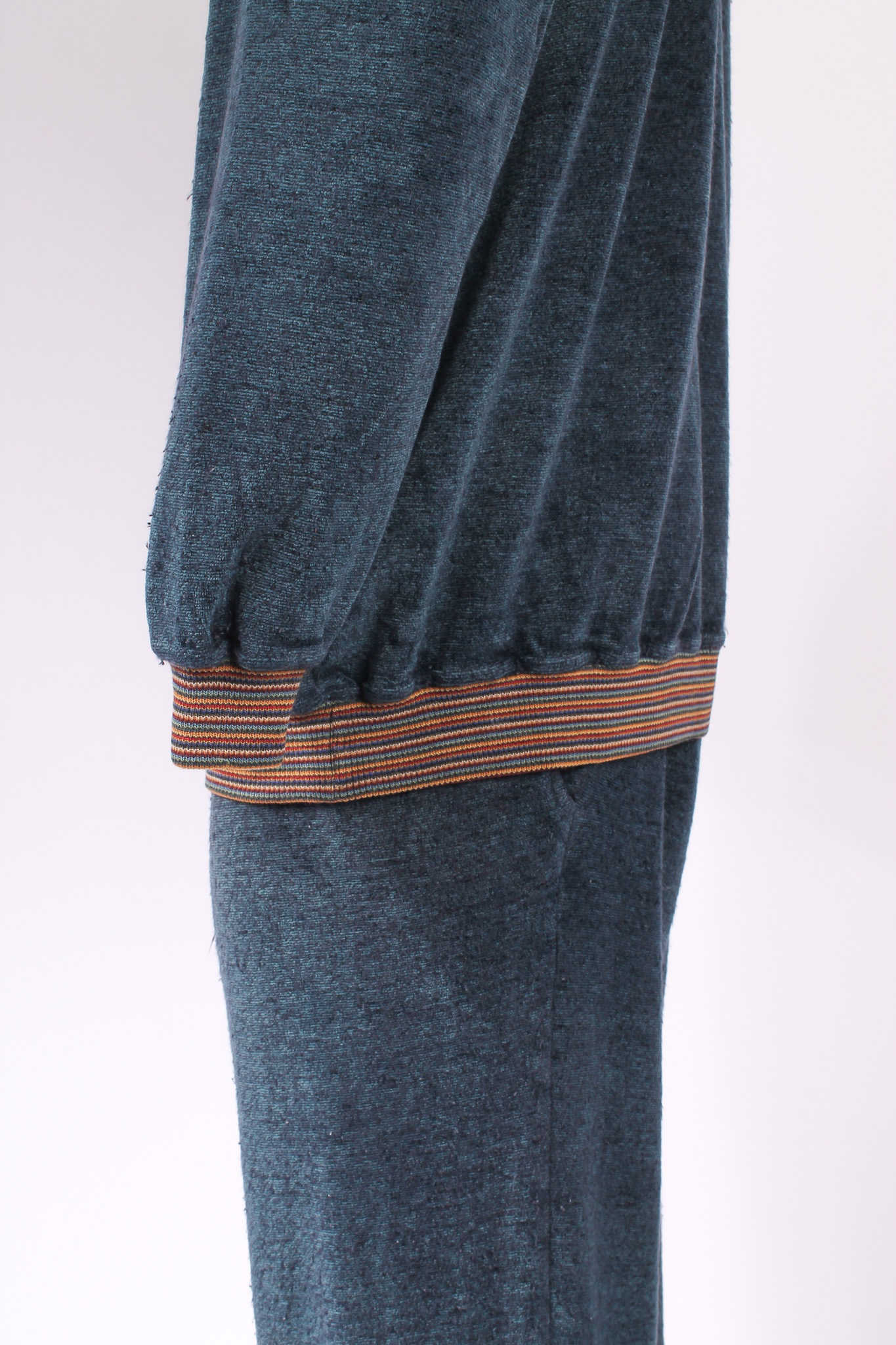 Completo tuta Missoni composto da top e pantalone. Il top presenta mezza abbottonatura con bottoncini logati, collo, polsini e fondo elasticizzati multicolor che richiamano il logo Missoni ricamato sul petto. Il pantalone ha vita elasticizzata e linea confortevole. Un capo sportivo ma distintivo, perfetto per chi ama l’estetica iconica del brand.